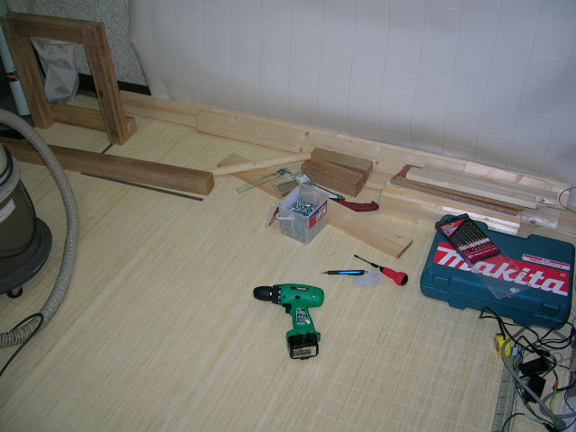 全部、木で作るので、下穴をあけて、次にドライバーでねじを締めるという