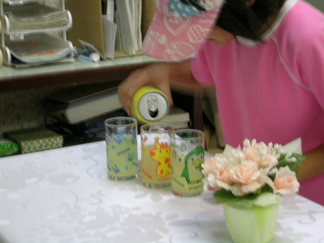 なんと一本のジュースを3人で分けるのです。